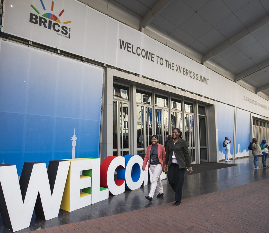 People walk near the venue of the 15th BRICS Summit in Johannesburg, South Africa, Aug. 20, 2023. The 15th BRICS Summit is scheduled to be held from Tuesday to Thursday in South Africa. (Xinhua/Zhang Yudong)