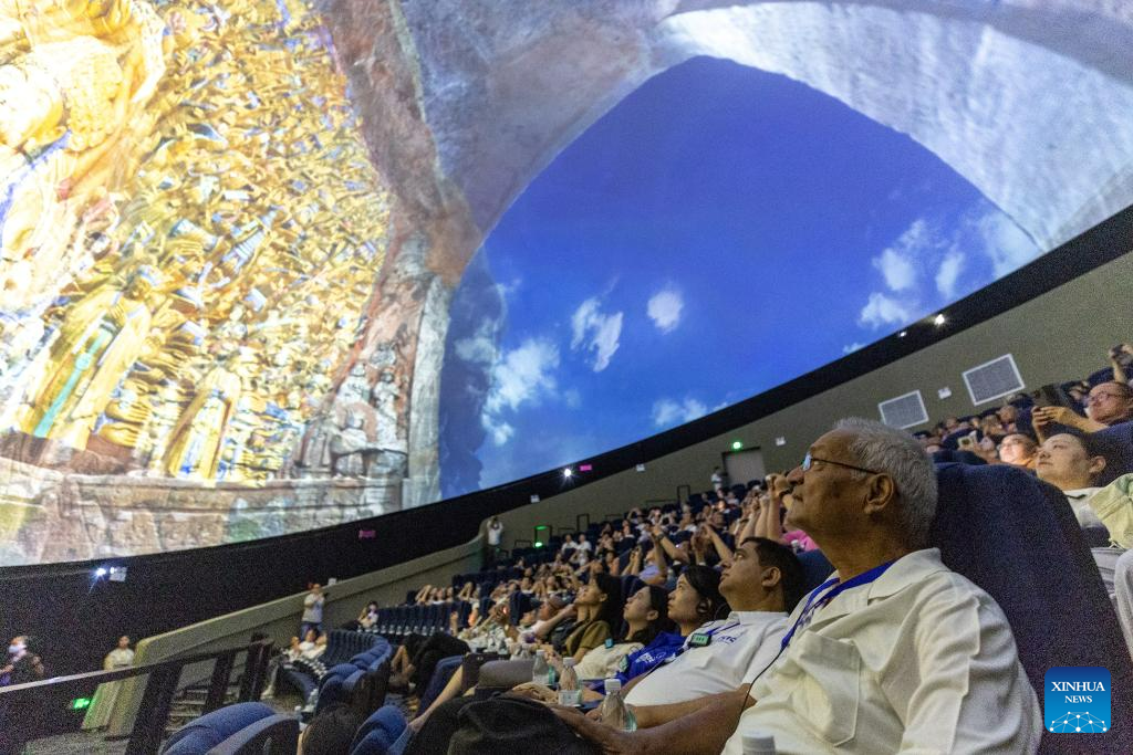 This photo taken on Aug. 19, 2023 shows the first International Forum on Cave Temple Conservation held in Chongqing, southwest China. (Xinhua/Huang Wei)