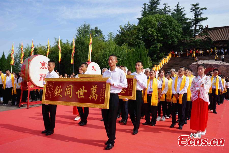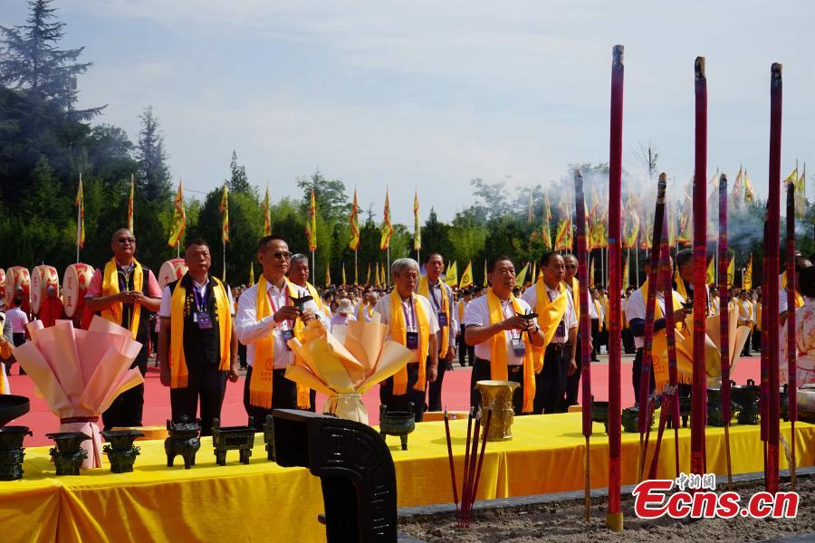 A ceremony is held to honor Emperor Yandi, a legendary ancestor of the Chinese nation at the Mausoleum of Yandi in Baoji, northwest China's Shaanxi Province, Aug. 22, 2023. (Photo: China News Service/Dang Tianye)