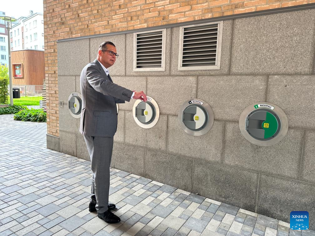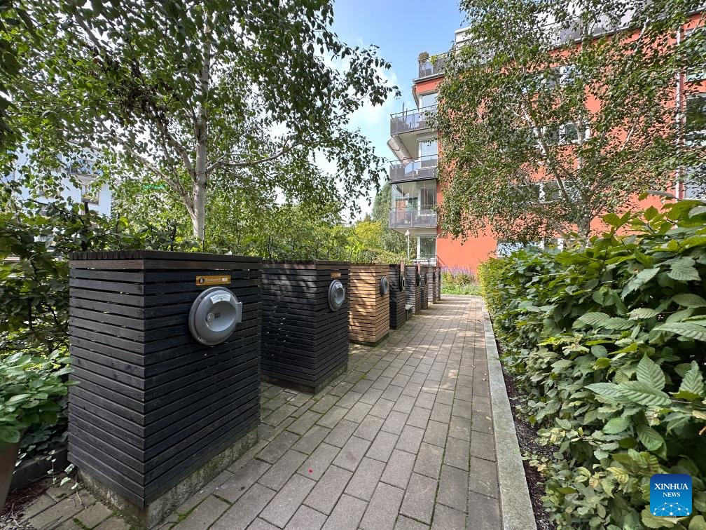 Photo taken on Aug. 21, 2023 shows the inlets of Envac's waste collection system in Hammarby Sjostad eco-city in Stockholm, Sweden. Collaboration with China on the development of smart and sustainable cities is worth long-term commitment, the chief executive officer (CEO) and president of Sweden's innovative waste collection company Envac AB told Xinhua in a recent exclusive interview. (Xinhua/He Miao)