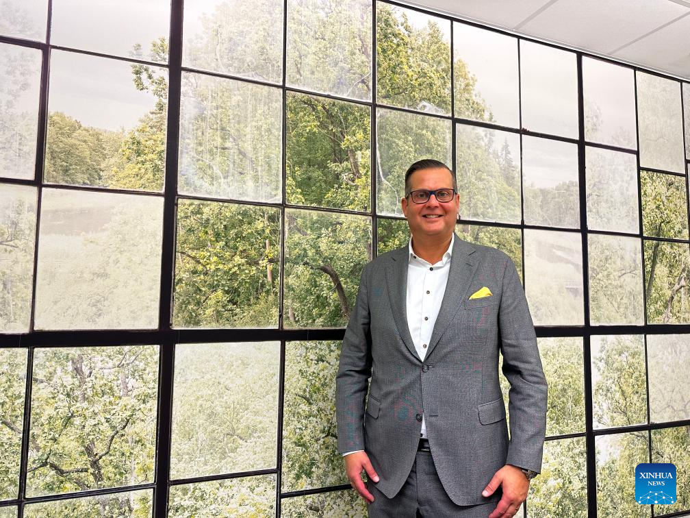 Joakim Karlsson, CEO and president of Sweden's innovative waste collection company Envac AB, poses for a photo in Stockholm, Sweden, on Aug. 21, 2023. Collaboration with China on the development of smart and sustainable cities is worth long-term commitment, the chief executive officer (CEO) and president of Sweden's innovative waste collection company Envac AB told Xinhua in a recent exclusive interview. (Xinhua/He Miao)