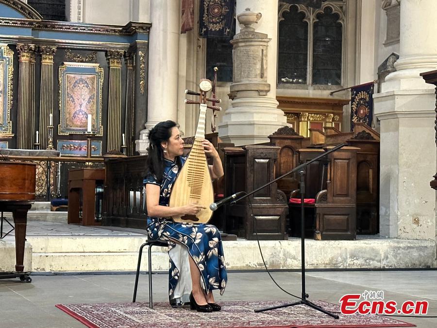 A pipa player plays "House of Flying Daggers" during the gala concert of London International Chinese Music Festival 2023 in London, UK, Aug. 22, 2023. (Photo: China News Service/Ouyang Kaiyu)