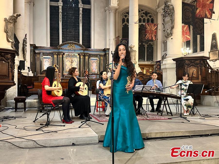 A singer sings Chinese folk song "Farewell " during the gala concert of London International Chinese Music Festival 2023 in London, UK, Aug. 22, 2023. (Photo: China News Service/Ouyang Kaiyu)