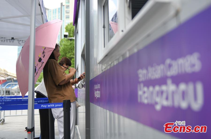 People purchase tickets for Hangzhou Asian Games at a ticket office in Hangzhou, east China's Zhejiang Province, Aug. 23, 2023. (Photo: China News Service/Wang Gang)
