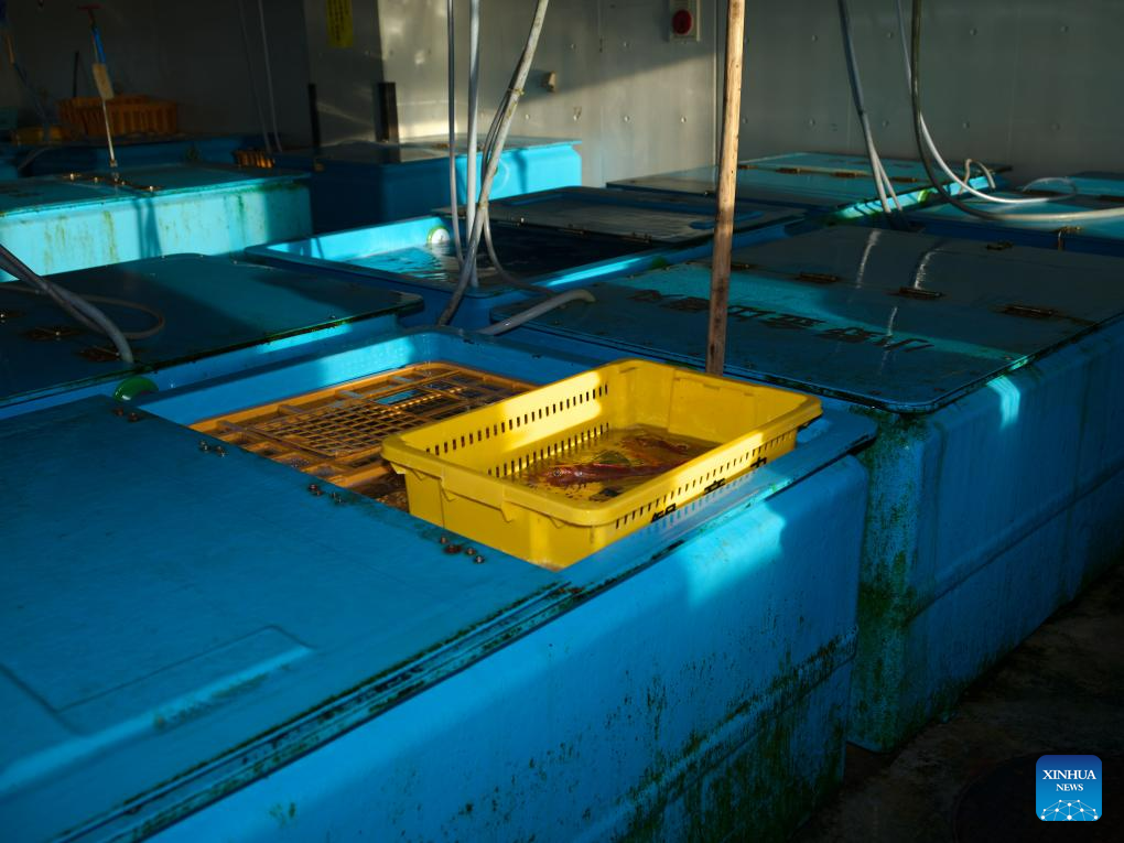 Fishes are seen at Tsurishihama Fishing Port in Shinchi Town, Fukushima Prefecture, Japan, Aug. 23, 2023. (Xinhua/Zhang Xiaoyu)