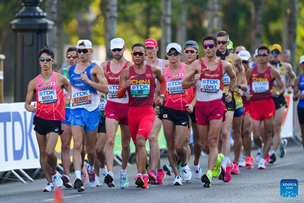 Athletes compete during the Men's 35km Race Walk Final of the World Athletics Championships Budapest 2023 in Budapest, Hungary, Aug. 24, 2023. (Xinhua/Zheng Huansong)