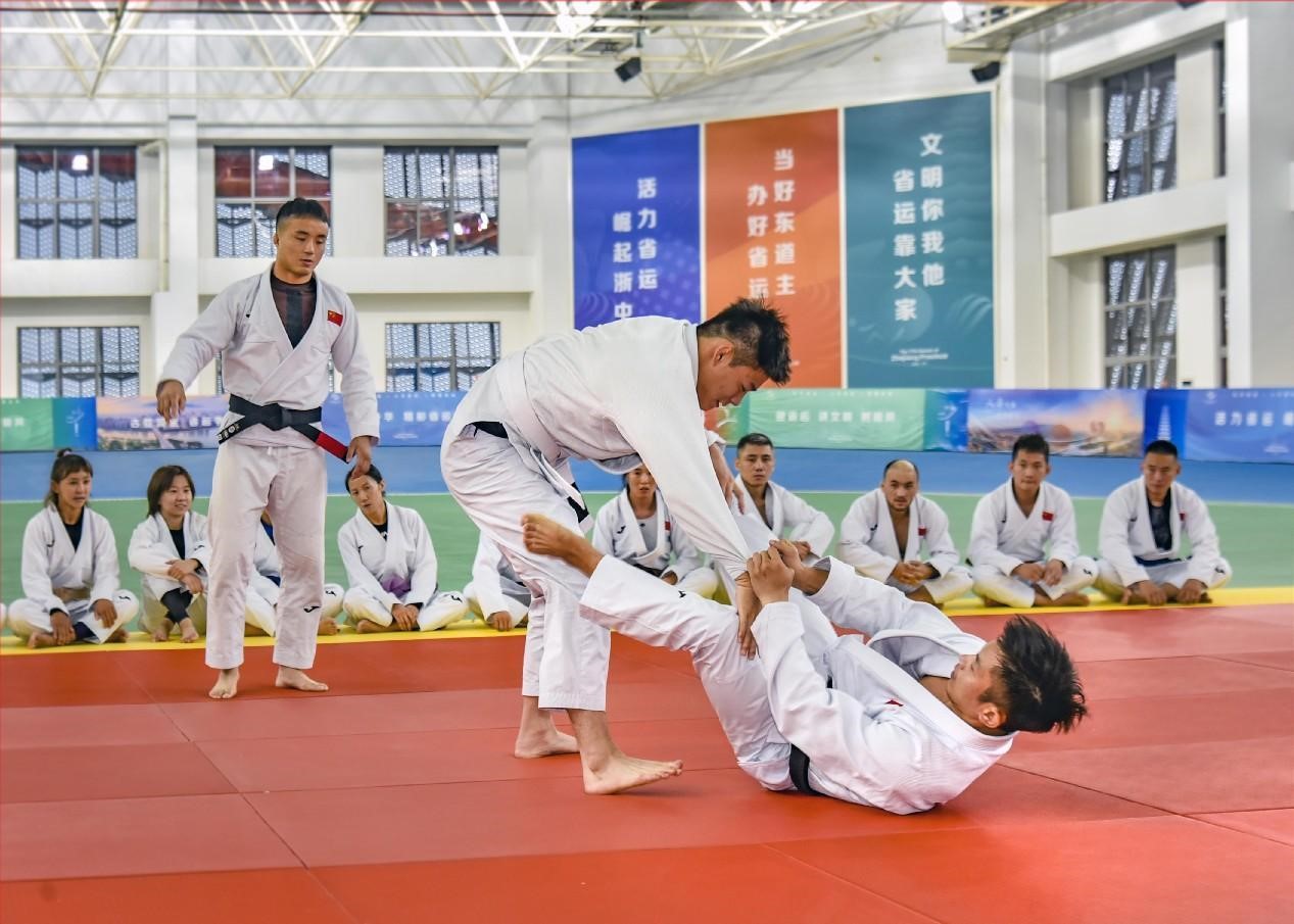 Members of the Chinese national ju-jitsu team train in Jinhua, east China's Zhejiang province, to prepare for the 19th Asian Games, July 28, 2023. (People's Daily Online/Wu Chaohong)