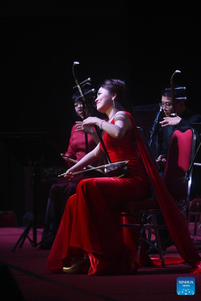 An artist performs Erhu Solo "Csardas"during the Silk Road Chinese Music Concert Indonesia in Sun City, Jakarta, Indonesia, on Aug. 24, 2023. (Xinhua/Zulkarnain)