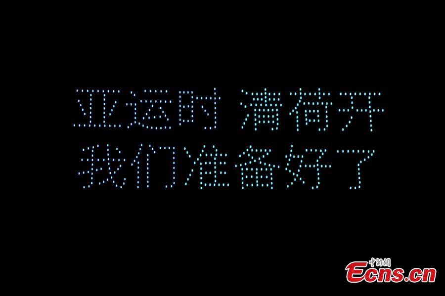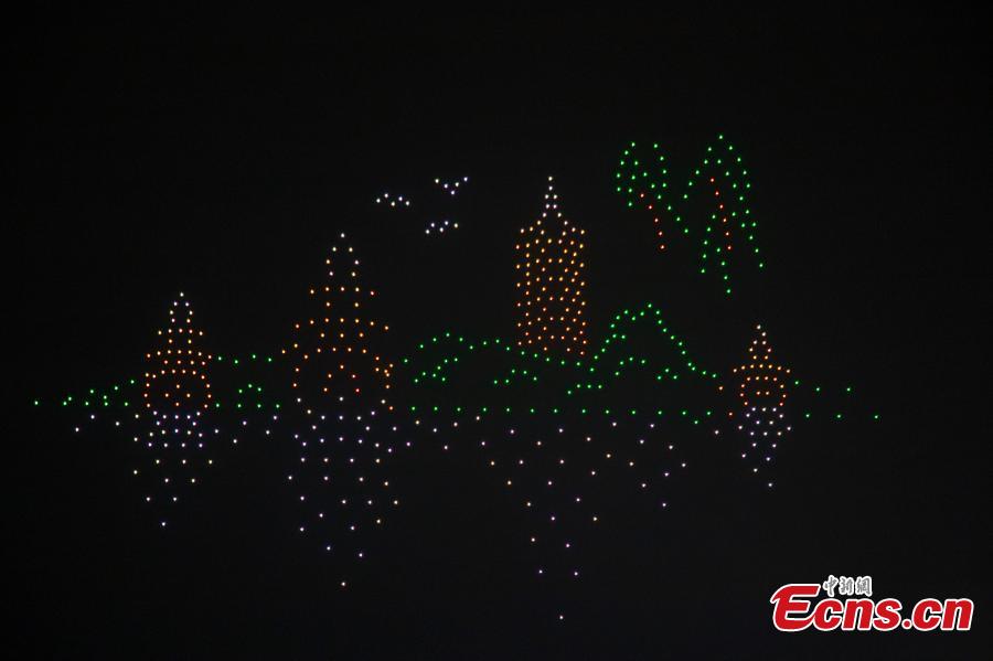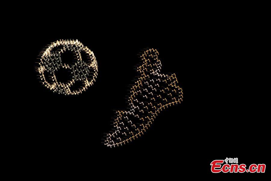 A spectacular drone show is staged to mark the 30-day countdown to the 19th Asian Games at Shangcheng Sports Centre Stadium in Hangzhou, east China's Zhejiang Province, Aug. 24, 2023. (Photo: China News Service/Xiao Jian)