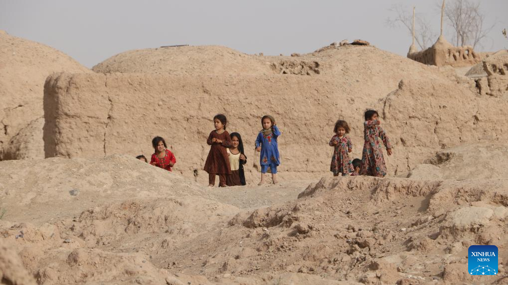 Children are pictured in a village threatened by unexploded ordnance left by U.S. forces in Farah Province, Afghanistan, July 26, 2023. (Photo by Marshal/Xinhua)
