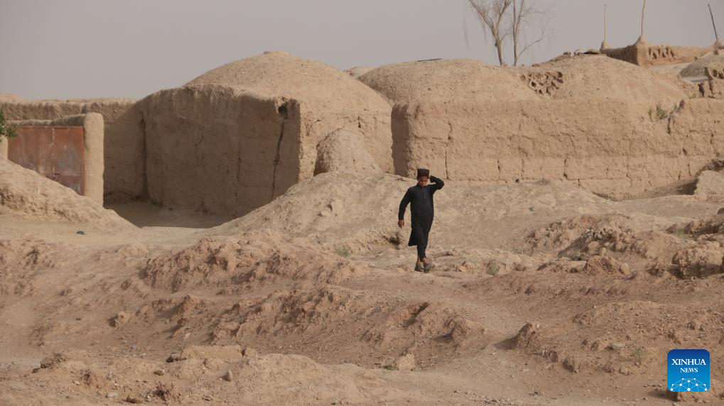 A boy is pictured in a village threatened by unexploded ordnance left by U.S. forces in Farah Province, Afghanistan, July 26, 2023. (Photo by Marshal/Xinhua)