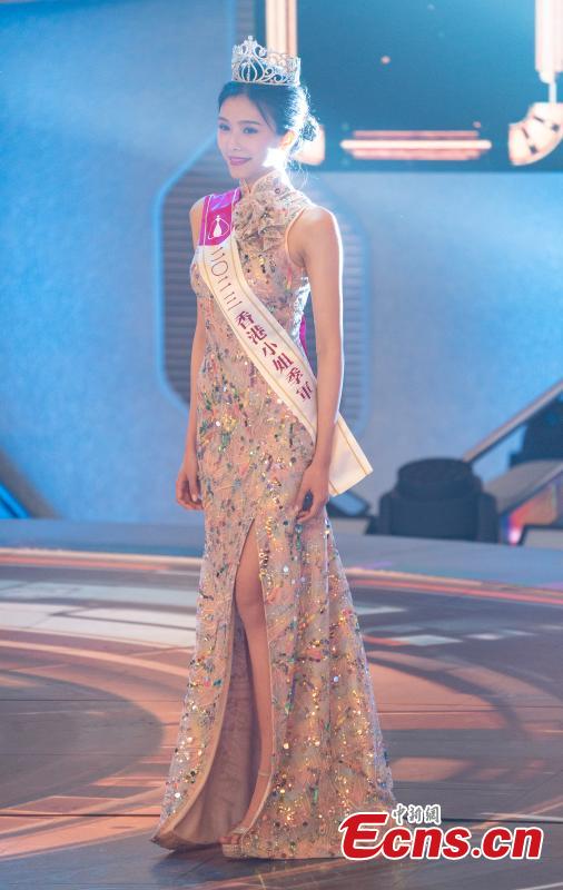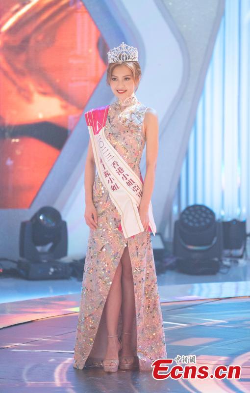 Lovelle Wang takes the stage after winning the second runner-up spot in the Hong Kong SAR, on Aug. 27, 2023. (Photo: China News Service/Hou Yu)