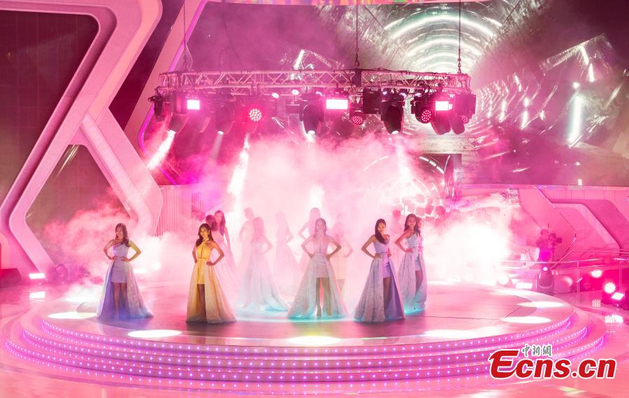 All the 16 beauties vying for the crown take the stage for their appearance at the Miss Hong Kong 2023 pageant, on Aug.27, 2023. (Photo: China News Service/Hou Yu)