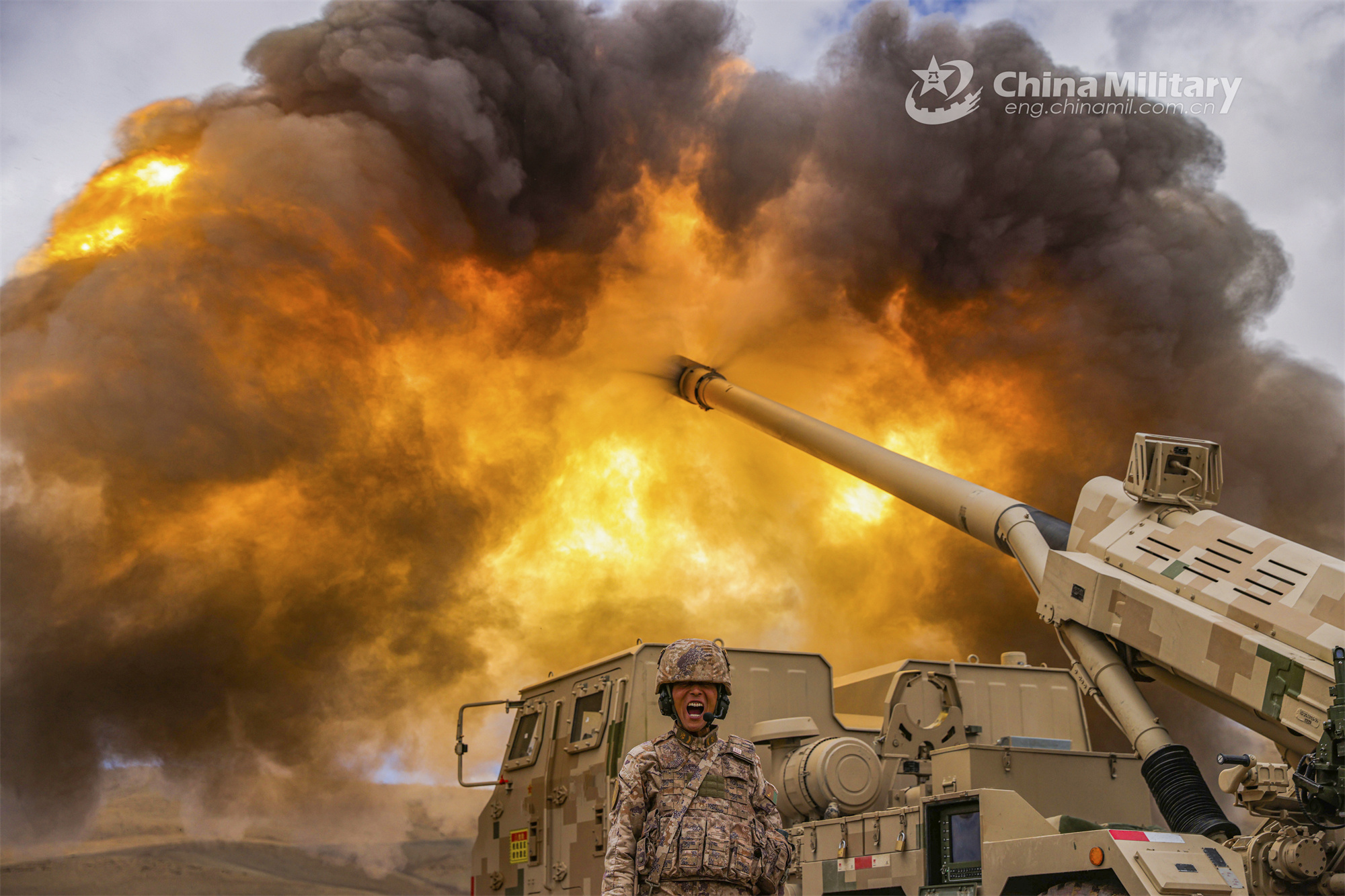 A self-propelled howitzer attached to an army regiment fires at simulated targets during a live-fire exercise on August 12, 2023. (eng.chinamil.com.cn/Photo by Li Longfei)