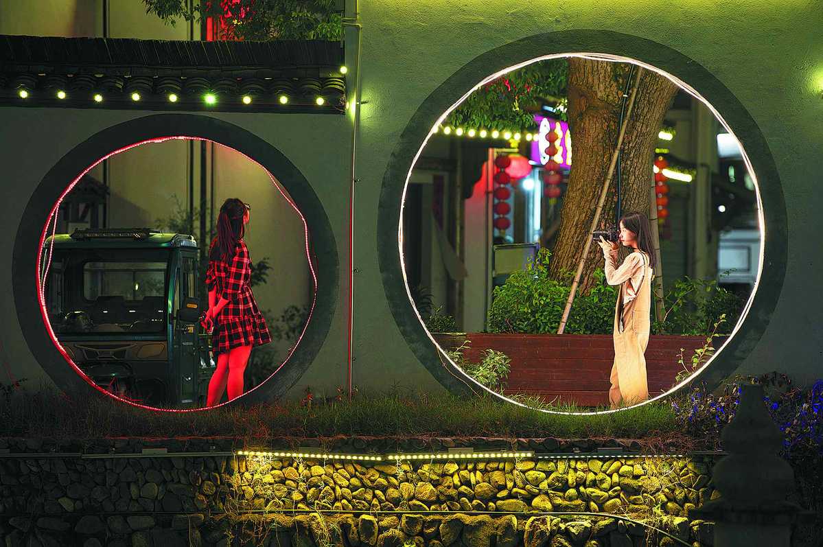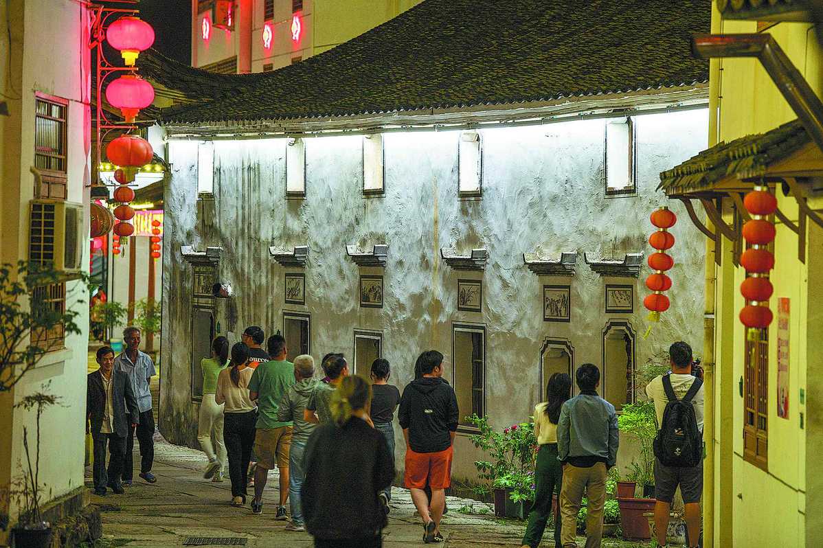 Tourists take an evening stroll in Shanghe village, Pujiang, in September. HU XIAOFEI/FOR CHINA DAILY