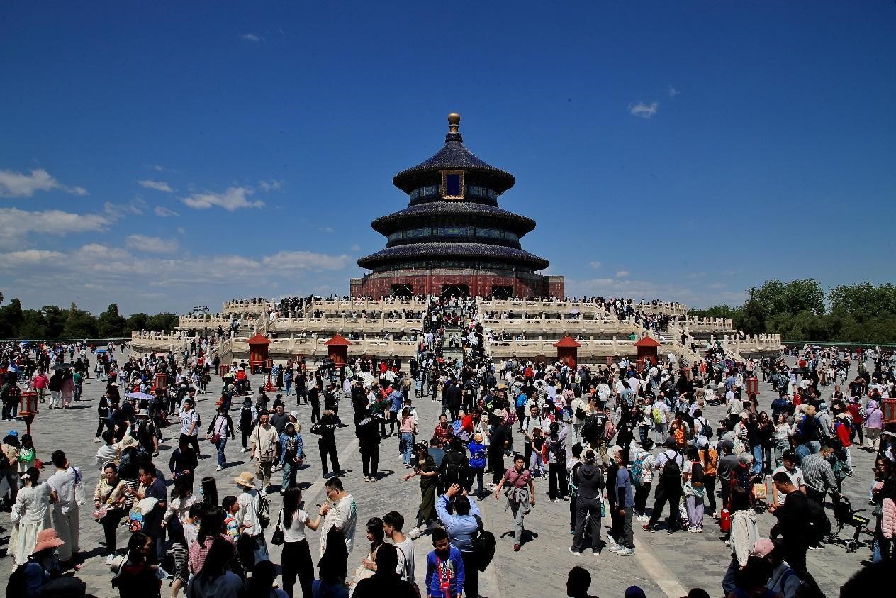 People visit the Temple of Heaven in Beijing. (People's Daily Online/Liu Xianguo)