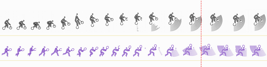 Xuan explained that each sports pictogram contained intricate complexities - alternating lines, bending joints, changing endpoints, and more. Using traditional methods would have doubled the number of static frames and production workload required for the kinetic pictograms.