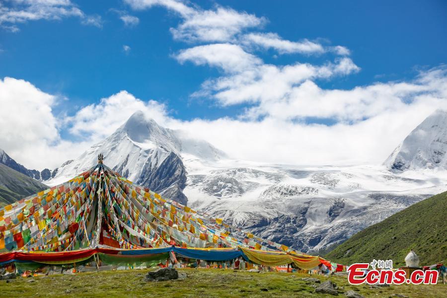 Photo taken on Aug. 27 shows the beautiful scenery at the Sapukonglagabo Mountain in Biru County of Nagqu, southwest China's Tibet Autonomous Region. (Photo: China News Service/Gong Que)