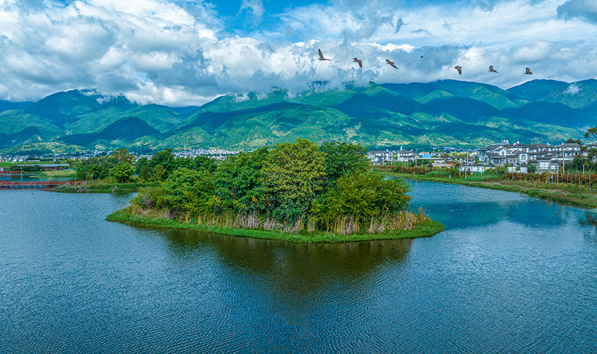 Photo shows the breathtaking scenery of wetlands in Erhai Lake in Dali Bai Autonomous Prefecture, southwest China's Yunnan Province. (Photo/Zhao Yizhou)