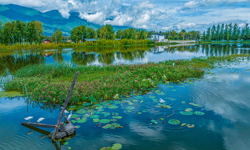 Photo shows the breathtaking scenery of wetlands in Erhai Lake in Dali Bai Autonomous Prefecture, southwest China's Yunnan Province. (Photo/Zhao Yizhou)