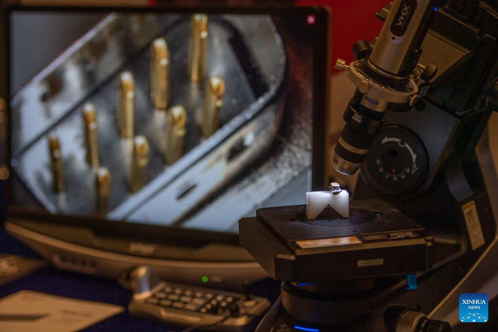 This photo taken on Aug. 29, 2023 shows a microscope system exhibited during a pre-exhibition supply and demand matchmaking meeting for the sixth China International Import Expo in Shenzhen, south China's Guangdong Province. A pre-exhibition supply and demand matchmaking meeting for the sixth China International Import Expo (CIIE) kicked off in Shenzhen on Tuesday, building a platform for communications among over 200 enterprises of the Guangdong-Hong Kong-Macao Greater Bay Area and about 60 exhibitors from Intelligent Industry and Information Technology, Food and Agricultural Products and Trade in Services exhibition areas of the CIIE. (Xinhua/Mao Siqian)