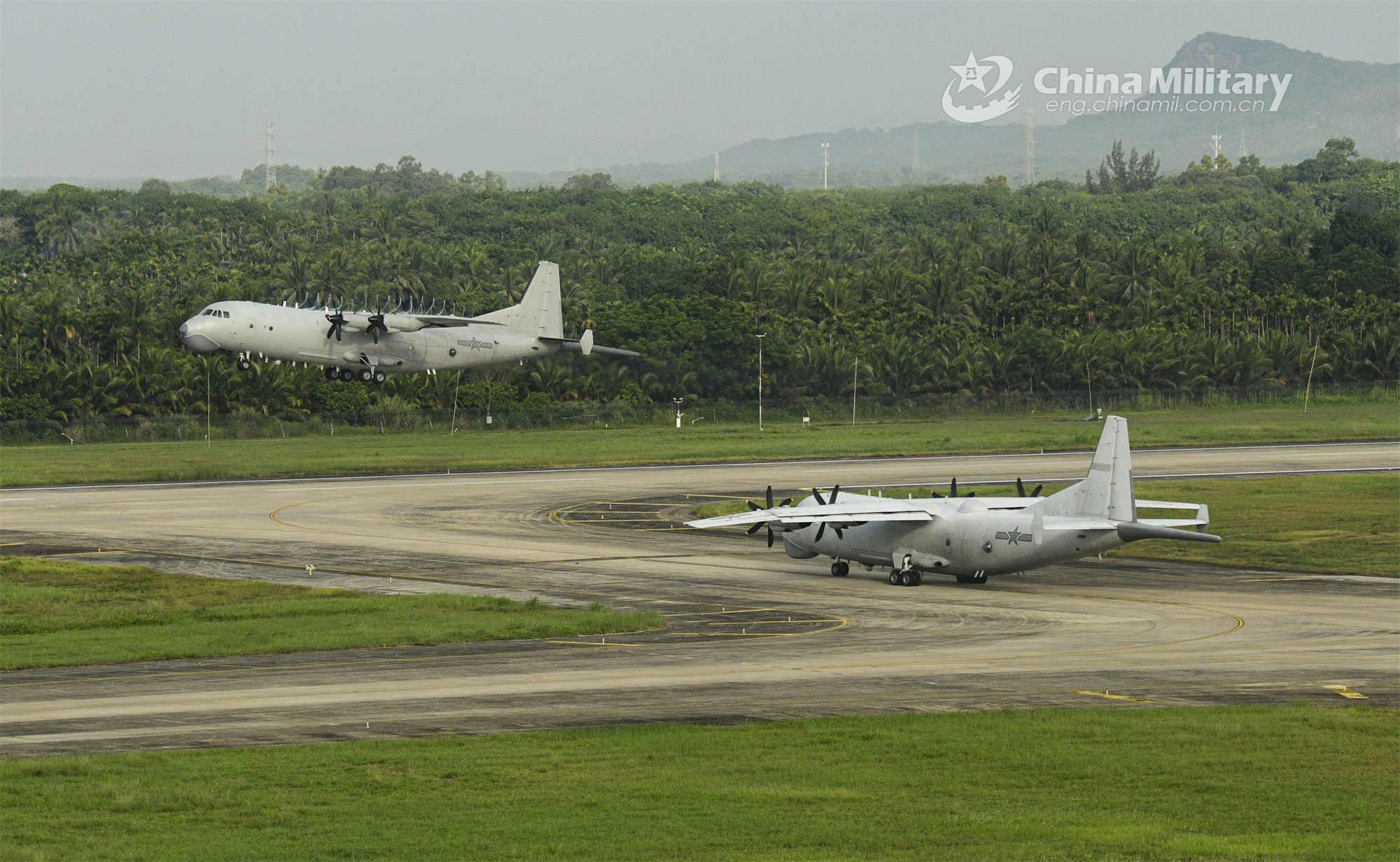 Anti-submarine patrol aircraft attached to a naval aviation regiment under the PLA Southern Theater Command take off in succession during a submarine search and attack training exercise from August 13 to 15, 2023. (eng.chinamil.com.cn/Photo by Qin Qianjiang)