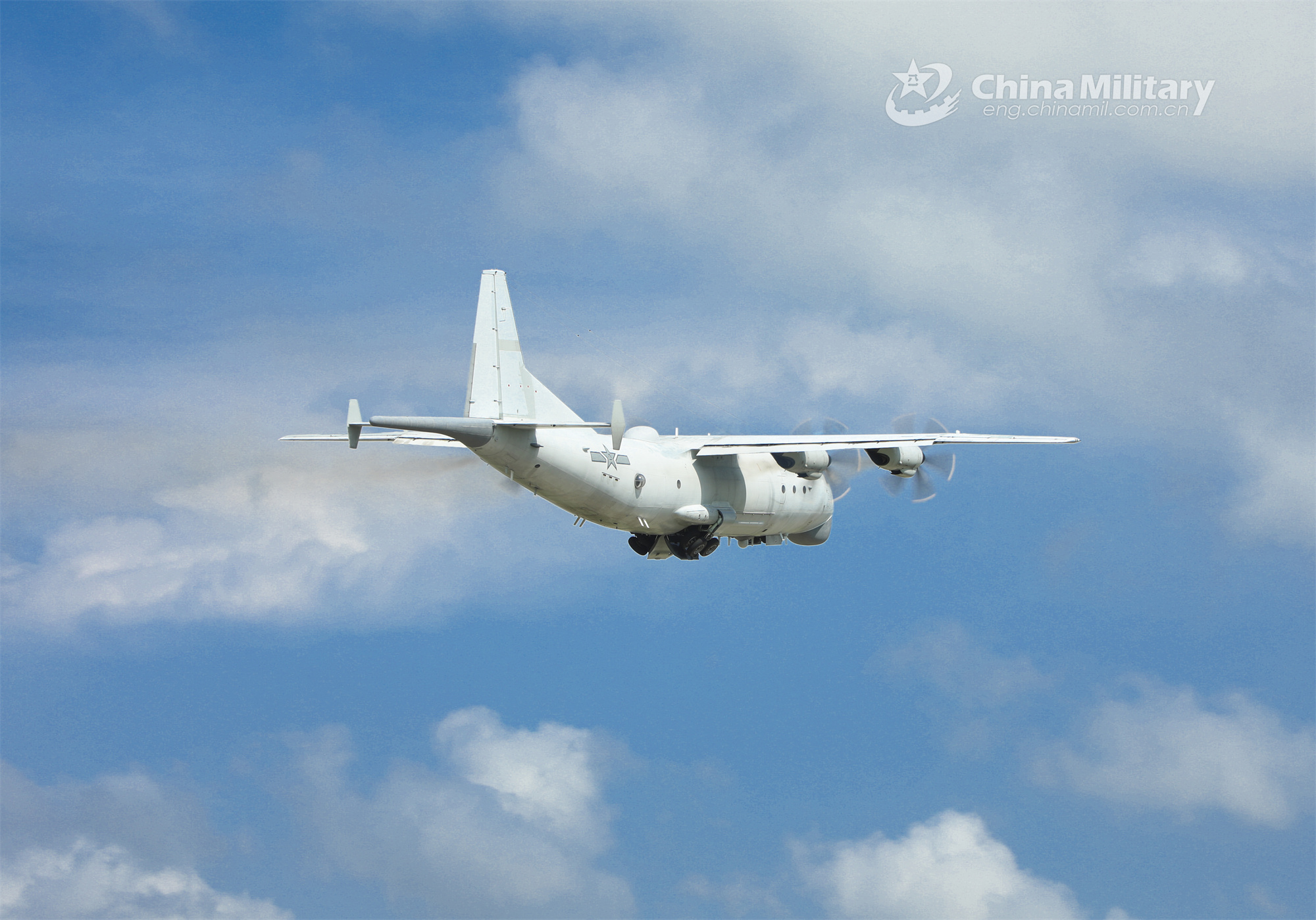 An anti-submarine patrol aircraft attached to a naval aviation regiment under the PLA Southern Theater Command flies to the designated area during a submarine search and attack training exercise from August 13 to 15, 2023. (eng.chinamil.com.cn/Photo by Qin Qianjiang)