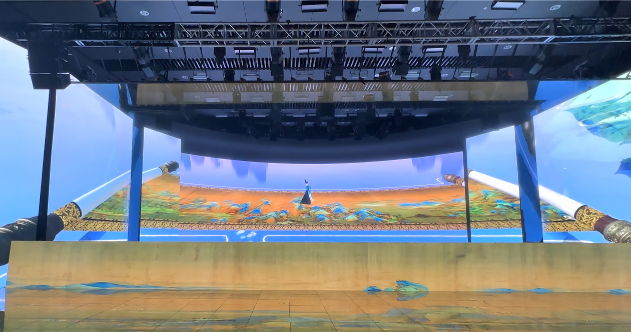 During the performance, virtual dancers moved gracefully on "rivers" and in "mountains" and "painting scrolls" across the stage, amazing the audience with technology-empowered rendering of traditional Chinese culture.