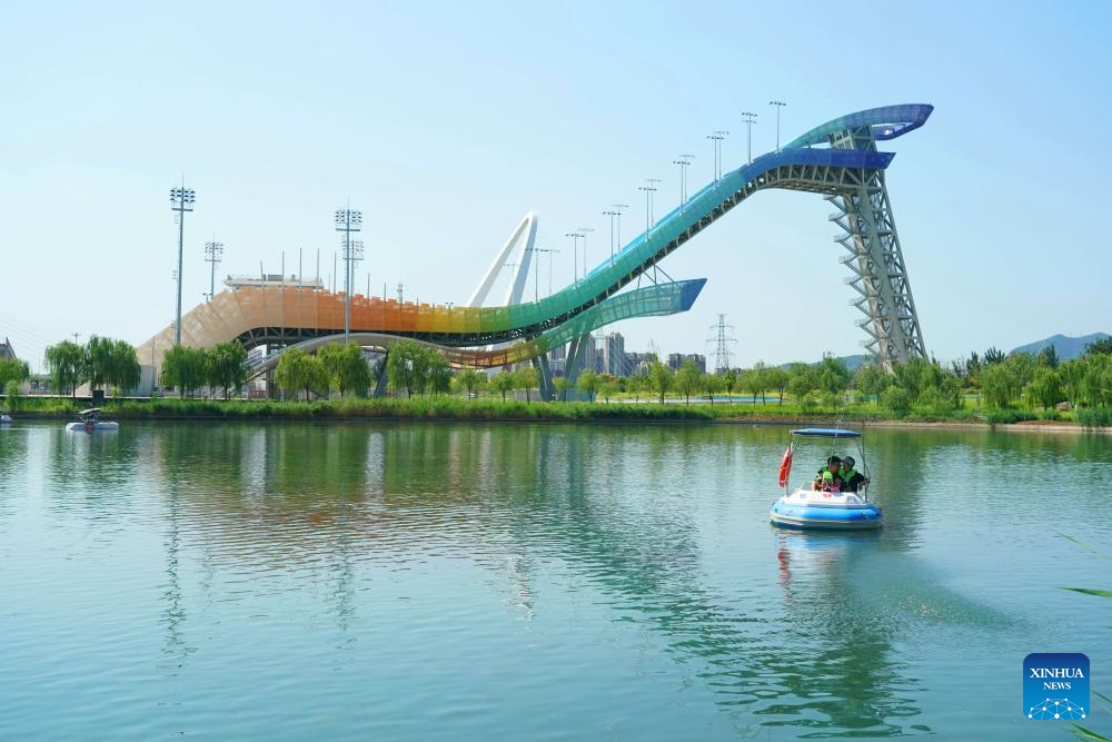 This photo taken on Aug. 23, 2023 shows the Big Air Shougang in the Shougang Park in Shijingshan District of Beijing, capital of China. (Xinhua/Ren Chao)