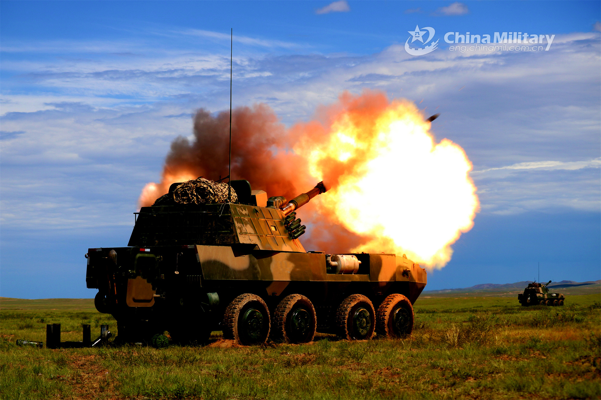 A self-propelled artillery system attached to a brigade under the PLA 78th Group Army opens fire during a live-fire shooting assessment on August 24, 2023. (eng.chinamil.com.cn/Photo by Zhang Yanjun)