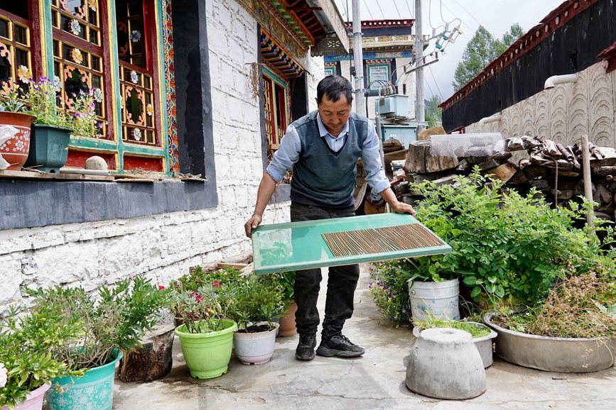 A man leaves Tibetan incense in the sun to dry in Thonpa town, Nyemo county, Lhasa city, southwest China's Xizang Autonomous Region. (Photo/People's Daily Online)
