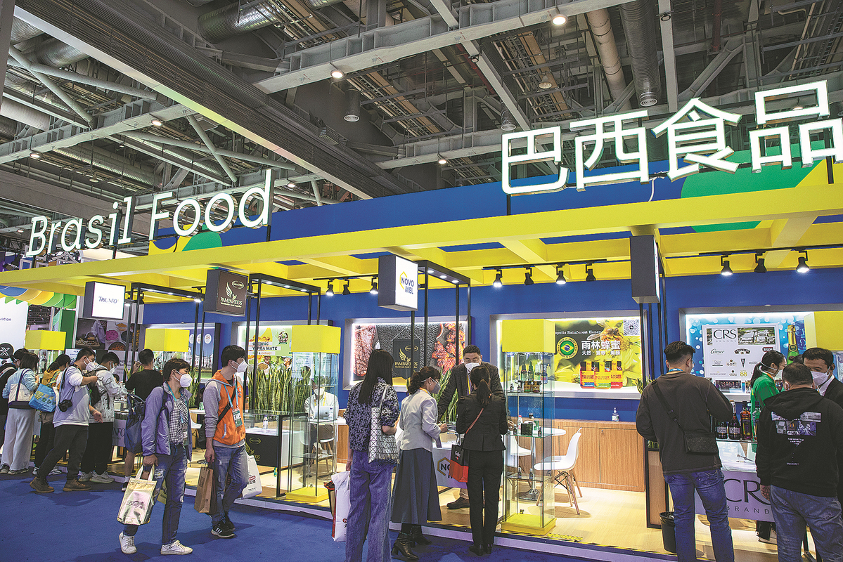 Visitors gather at the exhibition stand of Brazilian food during the fifth China International Import Expo in Shanghai. [Photo/China Daily]