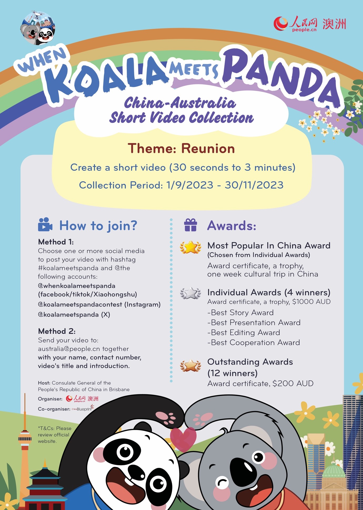 The stage is set for the start of the “When Koala Meets Panda” 2023 China-Australia Short Video Contest, which was initiated by the Consulate-General of the People’s Republic of China in Brisbane and organized by People’s Daily Online Australia. Marking its seventh annual iteration, the contest is all set to officially kick off on Sept. 1, 2023, inviting submissions from participants eager to contribute their creative works.