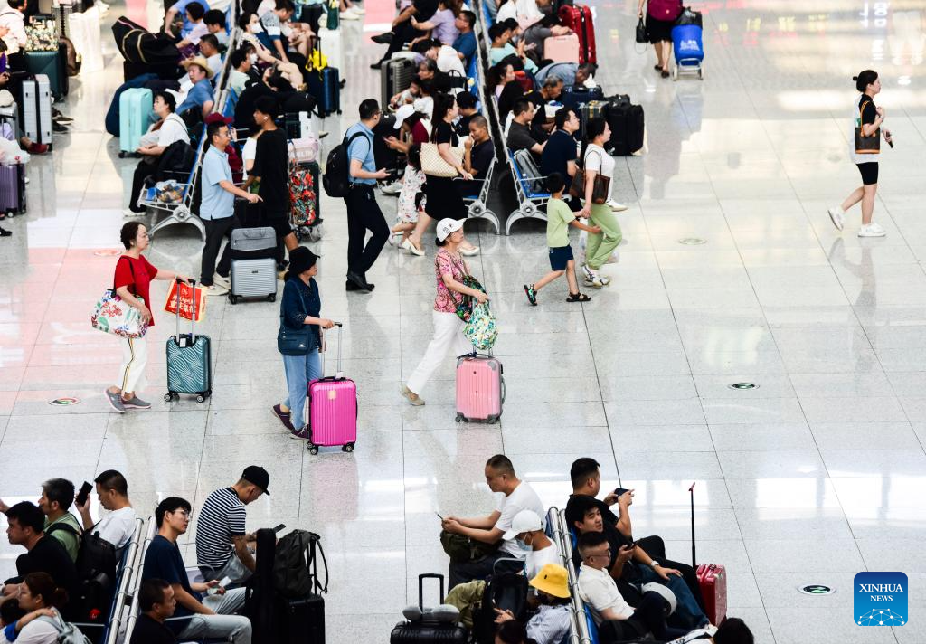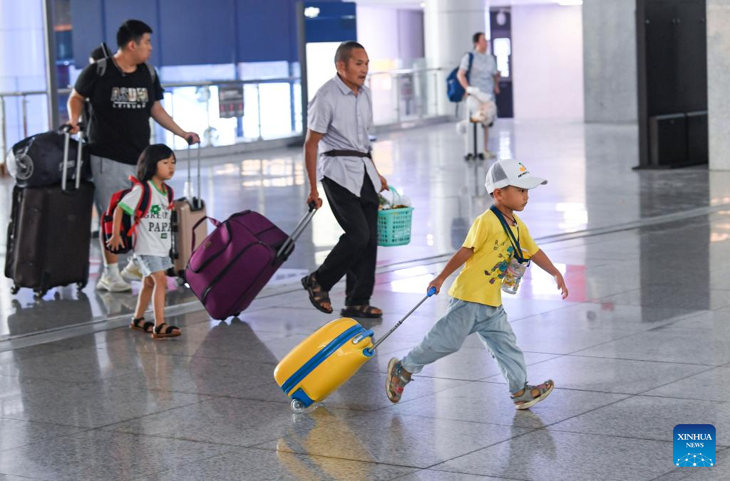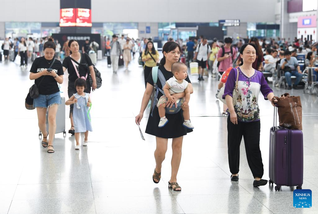 Passengers walk at the waiting hall of Chongqing North Railway Station in Chongqing, southwest China, Aug. 31, 2023. The 62-day summer travel rush officially concluded on Thursday. (Xinhua/Wang Quanchao)
