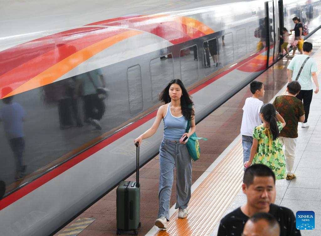 Passengers prepare to board a train at the Chongqing North Railway Station in Chongqing, southwest China, Aug. 31, 2023. The 62-day summer travel rush officially concluded on Thursday. (Xinhua/Wang Quanchao)