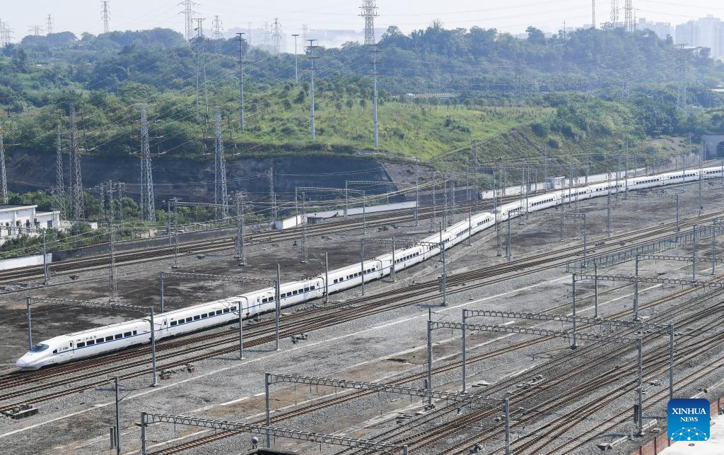 A train pulls into the Chongqing North Railway Station in Chongqing, southwest China, Aug. 31, 2023. The 62-day summer travel rush officially concluded on Thursday. (Xinhua/Wang Quanchao)