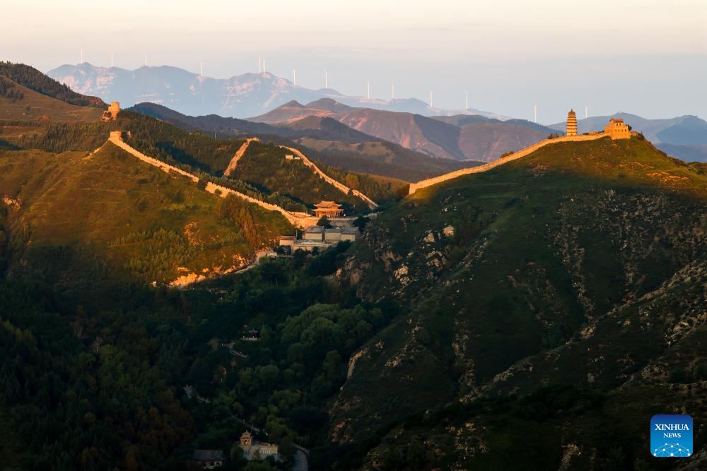 This photo taken on Aug. 29, 2023 shows the Yanmen Pass in Daixian County, north China's Shanxi Province. The Yanmen Pass is a famed part of the Great Wall. The Great Wall, a UNESCO World Heritage Site, consists of many interconnected walls, some dating back 2,000 years. (Xinhua/Yang Chenguang)