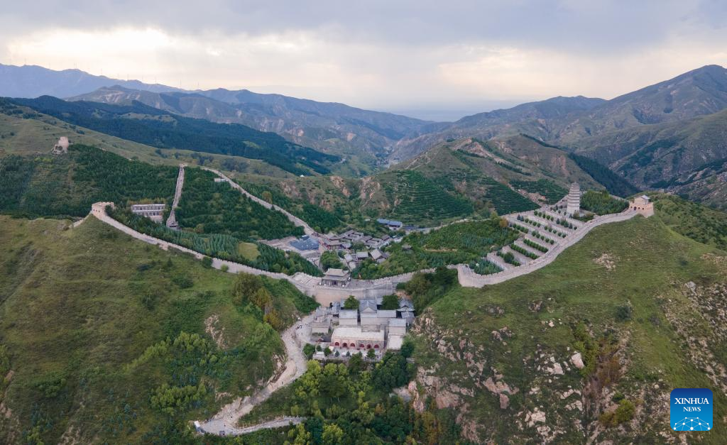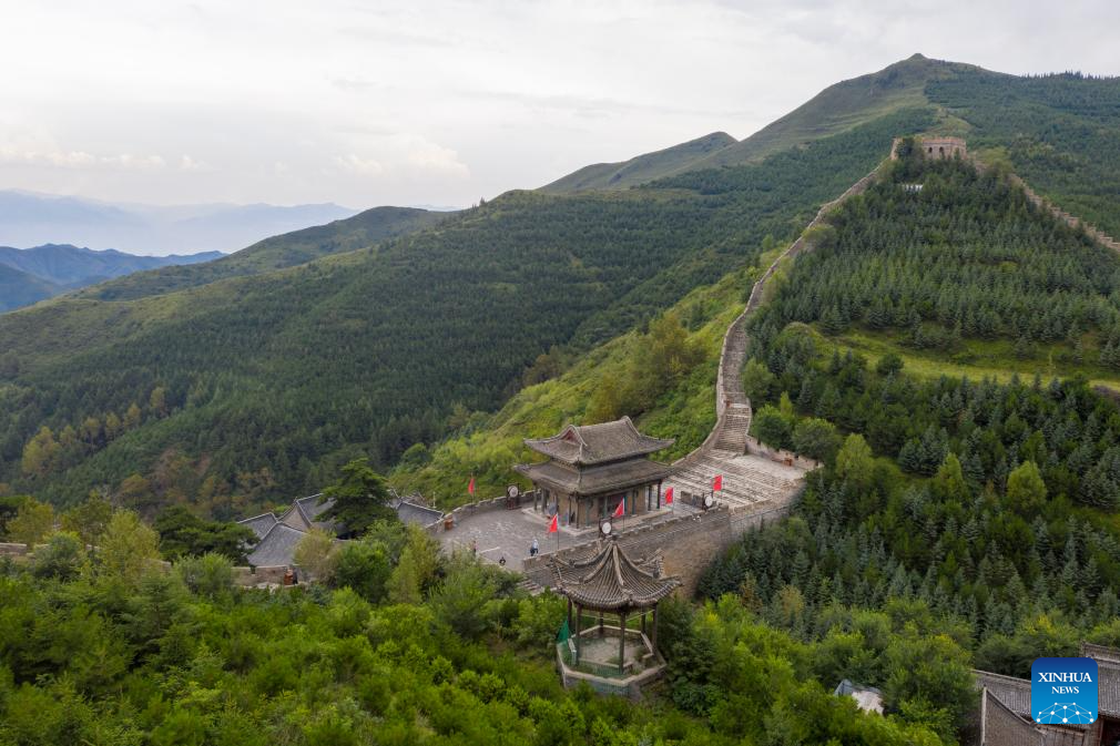 This photo taken on Aug. 30, 2023 shows the Yanmen Pass in Daixian County, north China's Shanxi Province. The Yanmen Pass is a famed part of the Great Wall. The Great Wall, a UNESCO World Heritage Site, consists of many interconnected walls, some dating back 2,000 years. (Xinhua/Liu Jinhai)