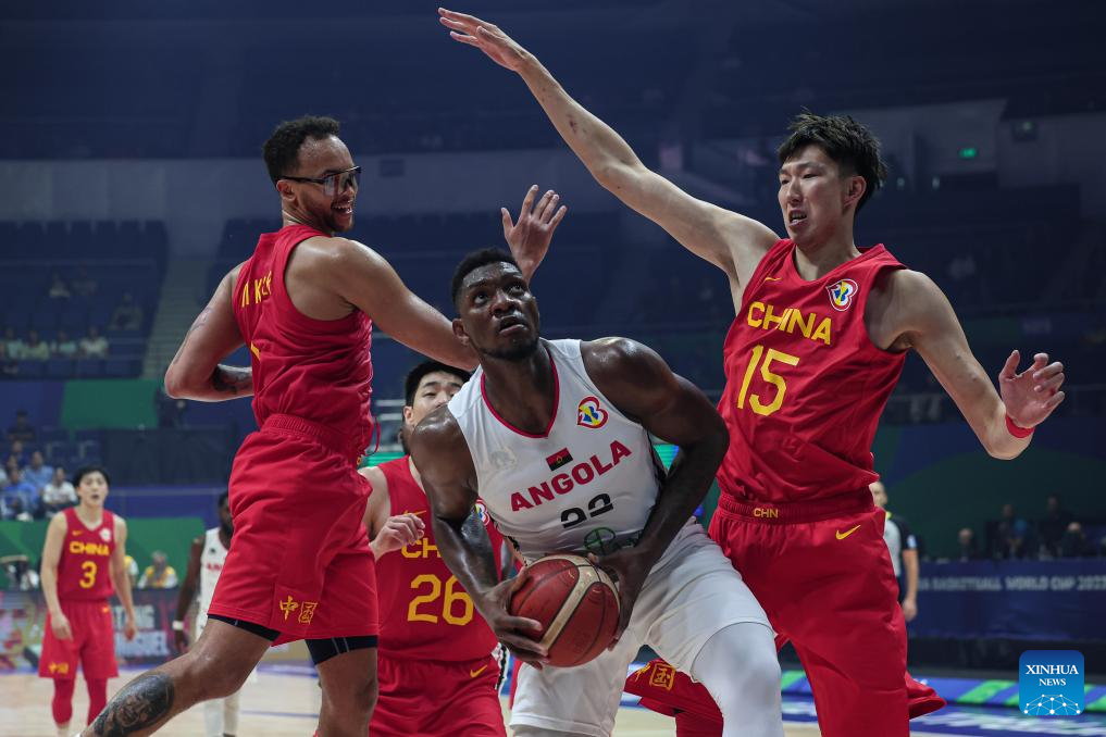Silvio De Sousa (C) of Angola competes during the classification round 17-32 match between China and Angola at the 2023 FIBA World Cup in Manila, the Philippines, on Aug. 31, 2023. (Xinhua/Wu Zhuang)