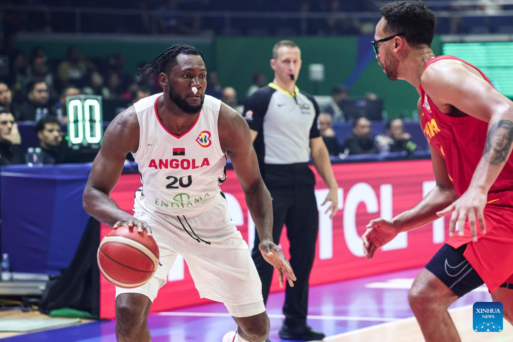 Jilson Bango (C) of Angola competes during the classification round 17-32 match between China and Angola at the 2023 FIBA World Cup in Manila, the Philippines, on Aug. 31, 2023. (Xinhua/Wu Zhuang)