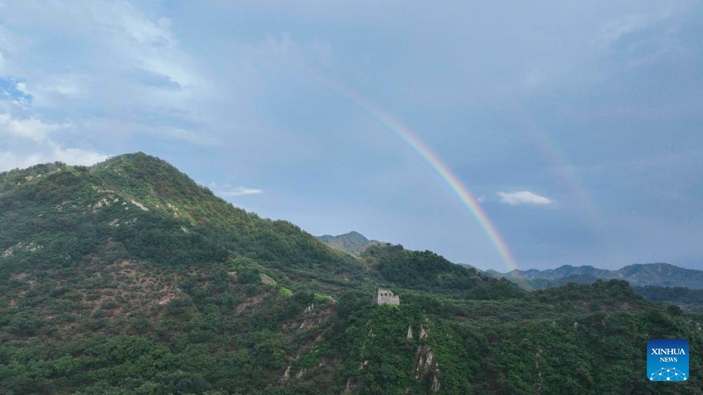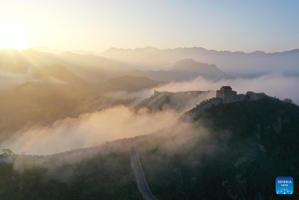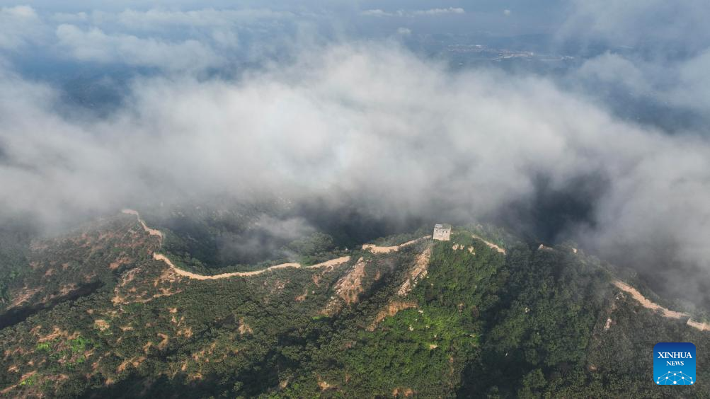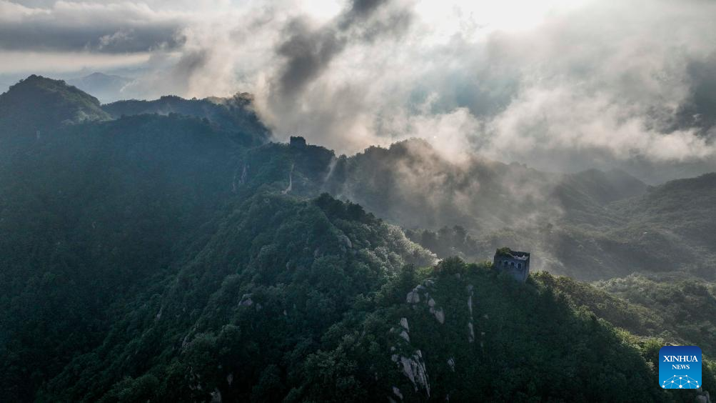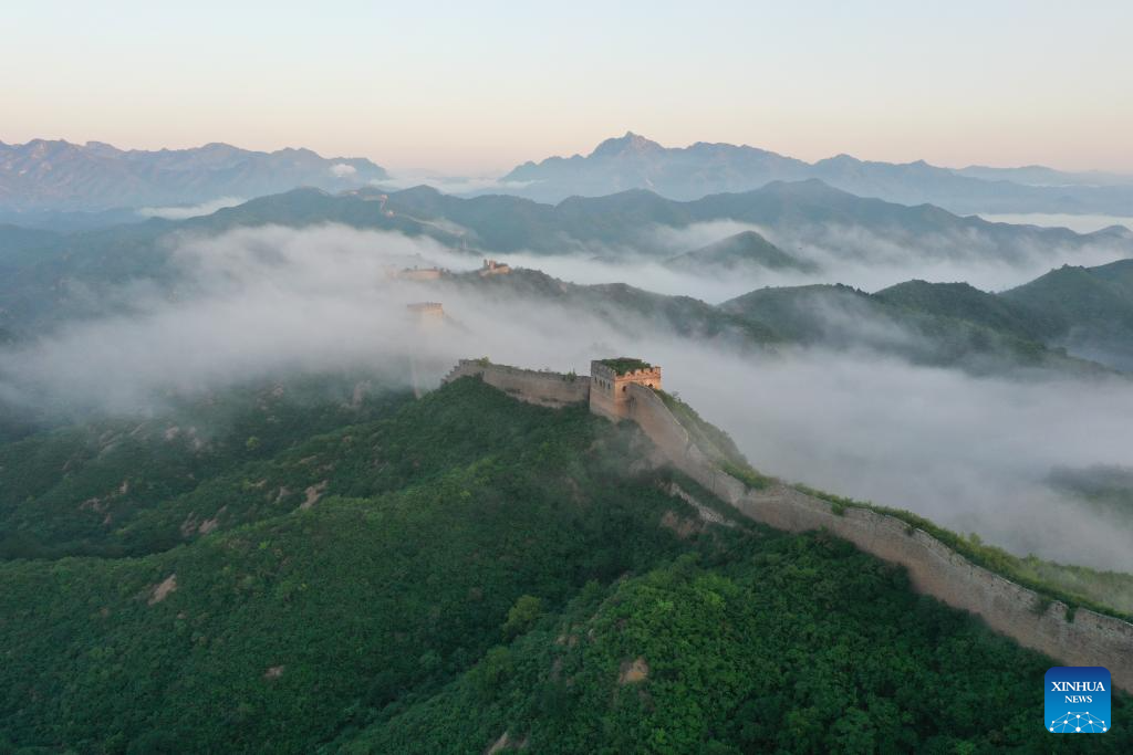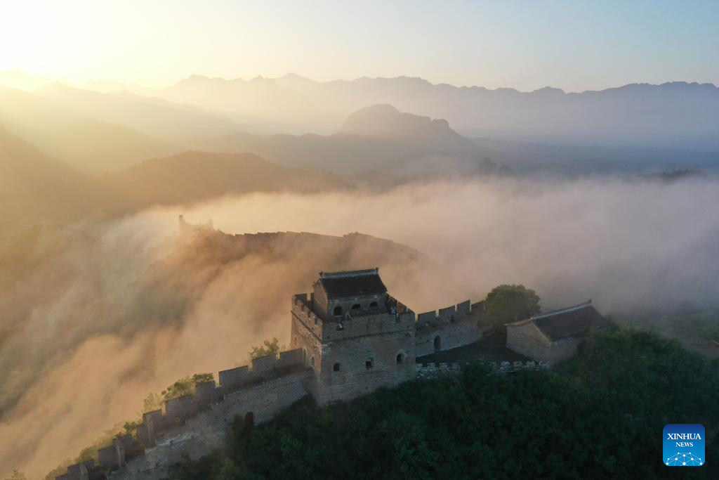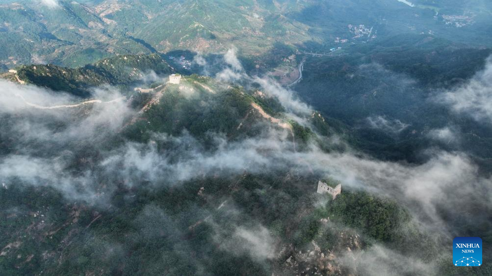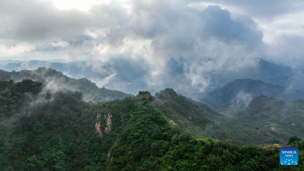 This aerial photo taken on Sept. 1, 2023 shows a view of the Jinshanling section of the Great Wall in Luanping County, north China's Hebei Province. (Photo by Zhou Wanping/Xinhua)