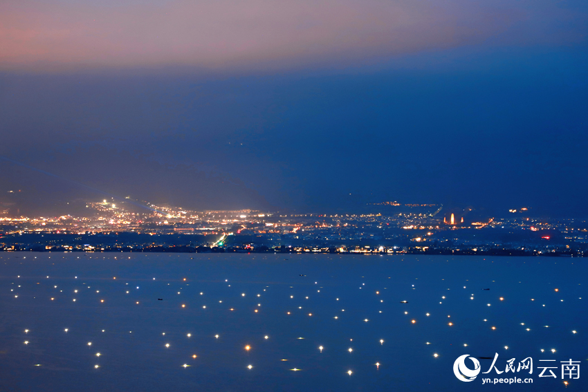 Dreamlike scene of Erhai Lake under blanket of fishing lights (6)
