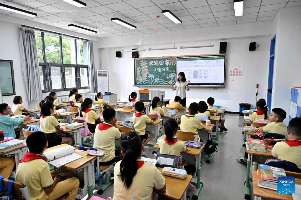 Students have a class at a primary school in Beijing, capital of China, Sept. 1, 2023. New school semester kicked off in many parts of China on Friday. (Xinhua/Li Xin)