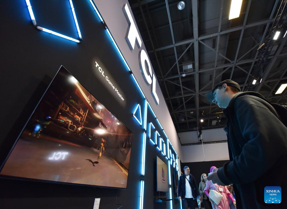 A visitor experiences an electronic game at the booth of Chinese company TCL during the IFA 2023 in Berlin, capital of Germany, on Sept. 1, 2023. As one of the world's leading trade fairs for consumer electronics, the five-day IFA 2023 opened here on Friday with over 2,000 exhibitors from 48 countries and regions, a much greater scale than last year. According to IFA official website, nearly 1,300 Chinese exhibitors have registered in this year's event. Chinese companies such as Hisense, TCL and Haier have occupied some of the largest exhibit areas with various products. (Xinhua/Ren Pengfei)