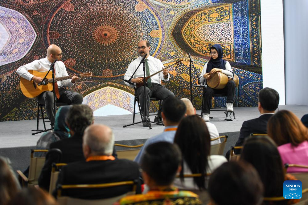 A band from Iran performs at the 8th Colourful World -- Cultural Exhibition of Countries along the Belt and Road during the 2023 China International Fair for Trade in Services (CIFTIS) in Beijing, capital of China, Sept. 2, 2023. (Xinhua/Ju Huanzong)