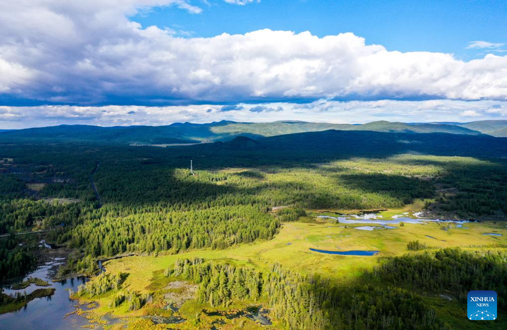 This aerial photo taken on Aug. 31, 2023 shows scenery of the national forest park in Arxan of Hinggan League, north China's Inner Mongolia Autonomous Region. (Xinhua/Lian Zhen)