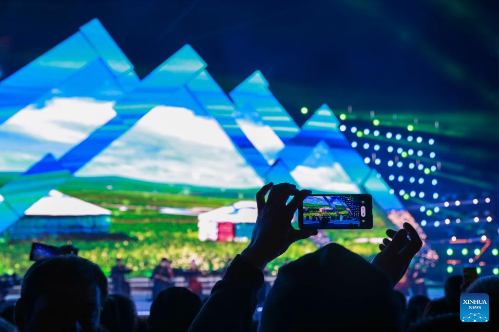 People watch performance at a music festival in Arxan of Hinggan League, north China's Inner Mongolia Autonomous Region, Sept. 2, 2023. (Xinhua/Wang Kaiyan)