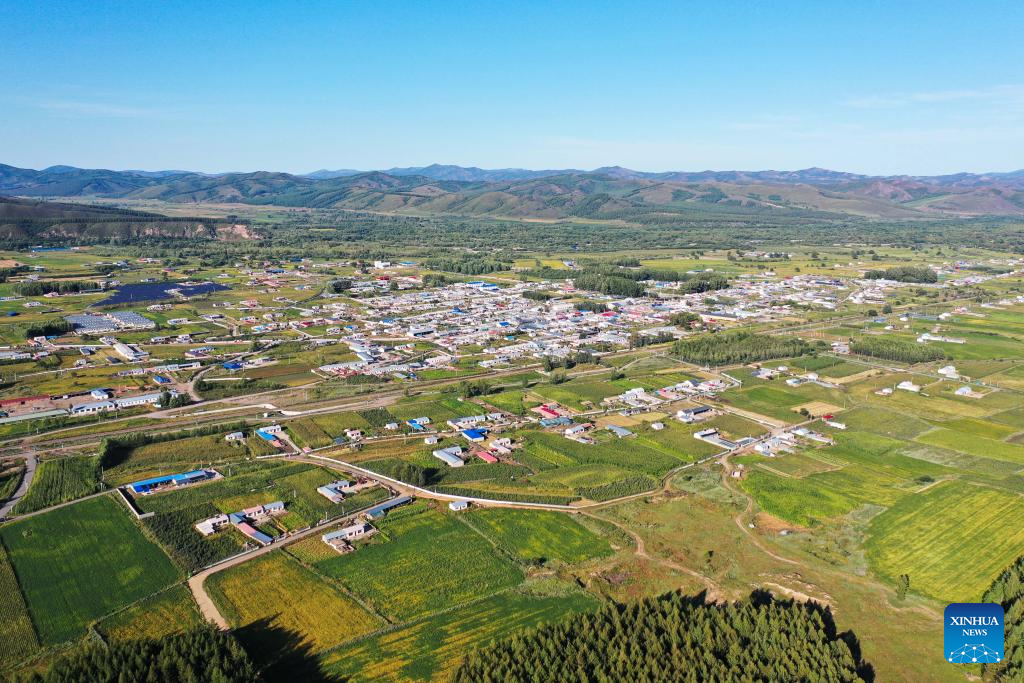 This aerial photo taken on Sept. 2, 2023 shows the scenery of Xikou Village in Arxan of Hinggan League, north China's Inner Mongolia Autonomous Region. (Xinhua/Li Zhipeng)