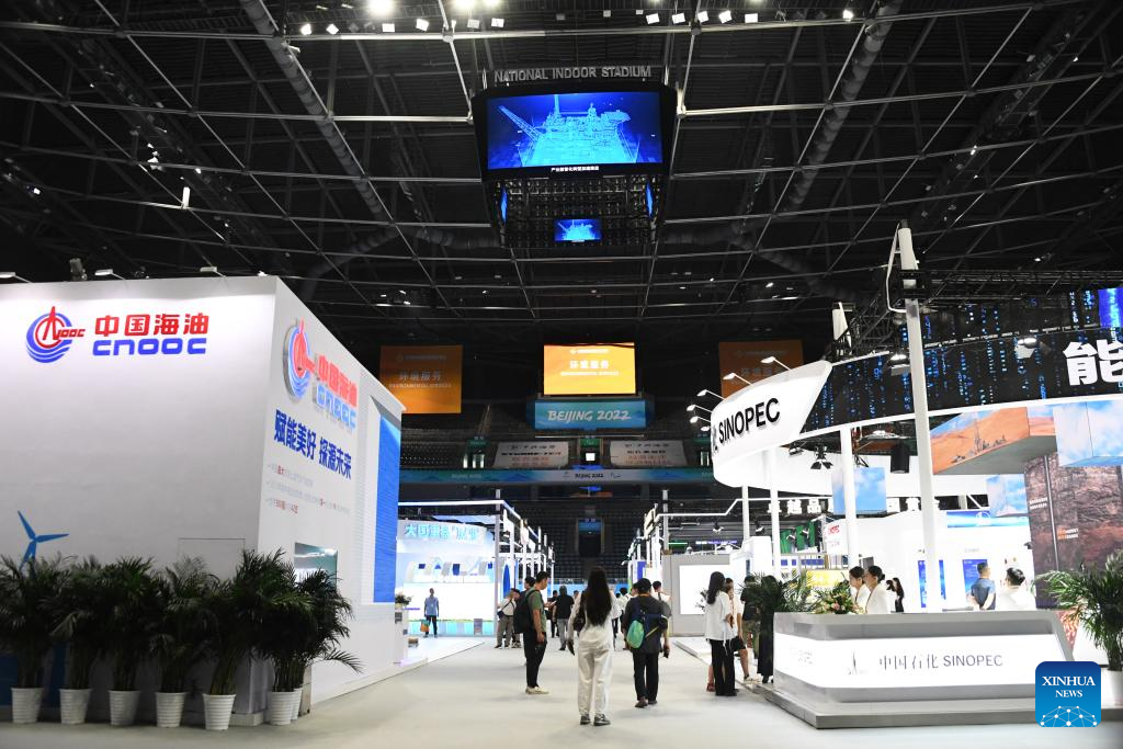 This photo taken on Sept. 2, 2023 shows an urban energy-themed exhibition booth at the environmental services exhibition of the 2023 China International Fair for Trade in Services (CIFTIS) in Beijing, capital of China. Themed "Opening-up leads development, cooperation delivers the future," the 2023 CIFTIS is being held in Beijing from Sept. 2 to 6 and features over 200 varied events, including forums, negotiations, and summits. The green and low-carbon drive is a major feature of the event, which has several related themed forums and exhibitions of cutting-edge green services, technologies, and business models. (Xinhua/Zhang Chenlin)