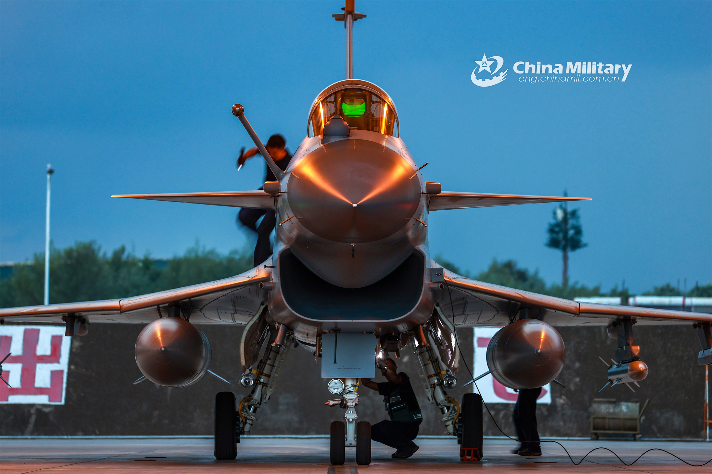 Maintenance men assigned to an aviation brigade of the air force under the PLA Southern Theater Command perform inspections prior to a round-the-clock flight training exercise on August 13, 2023. (eng.chinamil.com.cn/Photo by Wang Guoyun)
